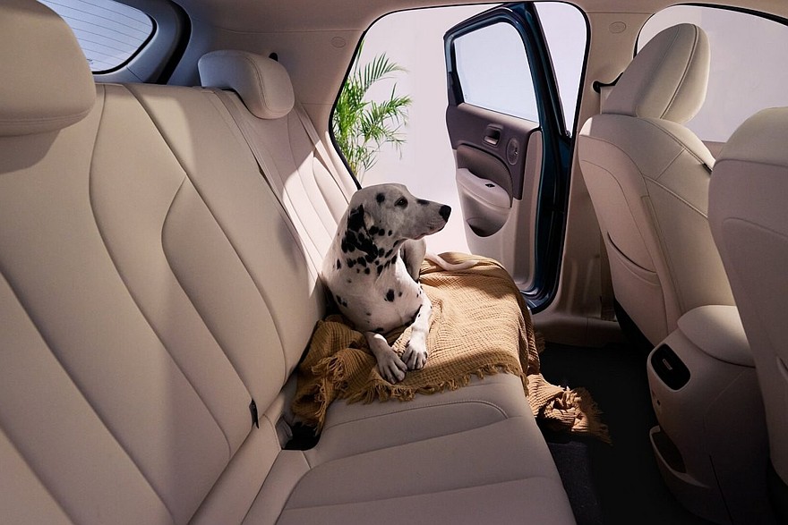 Внутри паркетник тоже подражает хэтчу. В салоне установлены двухспицевый руль, раздельные экраны приборки и мультимедиа диагональю 10,25 и 15,6 дюйма соответственно (их электрохэтч обрел после рестайлинга, прежде было табло), под вторым планшетом расположены «рычажки». При этом кроссовер Ora 5 получил полноценный двухэтажный центральный тоннель, в верхней части которого находятся площадка для беспроводной зарядки и пара неприкрытых подстаканников. Передняя панель может быть отделана тканью. Объем багажника «пятерки» — 317 литров. Дополнительного отсека под крышкой капота нет.