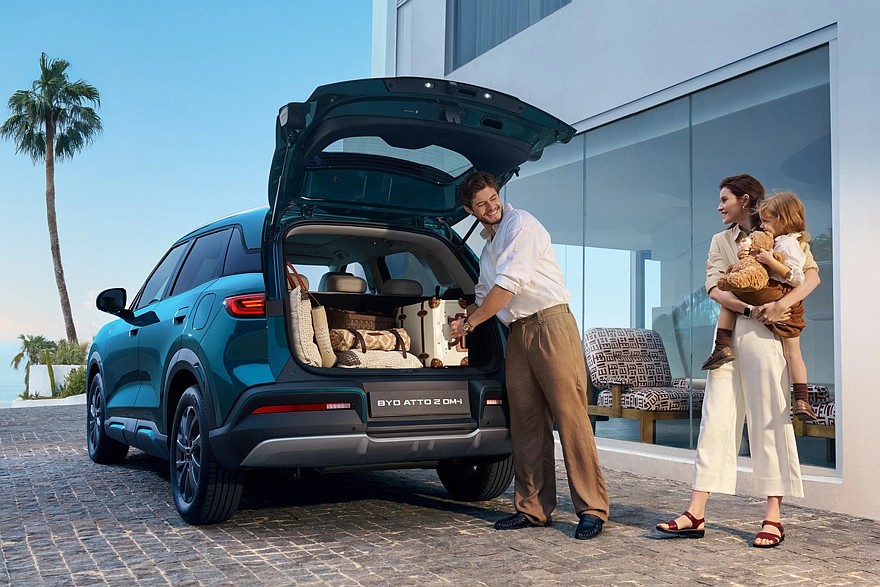 В списке оборудования Atto 2 DM-i Active значатся: 16-дюймовые диски, светодиодная оптика, тканевая обивка, виртуальная приборка (8,8 дюйма), мультимедиа-система с планшетом диагональю 12,8 дюйма, камера заднего вида, адаптивный круиз-контроль. В версии Boost появляются 17-дюймовые колеса, панорамный люк, «кожа», беспроводная зарядка, подогрев передних сидений, камеры кругового обзора.