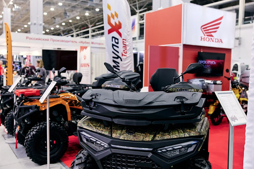 SPRMOTORS предложил гостям разнообразие: на стенде участника разместились дорожные байки, максискутеры, скутеры и эндуро. Компания «Северный Технопарк» продемонстрировала российские разработки, впечатлившие гостей: универсальный трансформер KwadrX (квадроцикл + снегоход) и современный мотобуксировщик X‑DOG, ставший одной из ярких новинок экспозиции. JAWA привезла всеми горячо любимые мотоциклы. Внимание посетителей притягивали белая JAWA Perak и самая популярная модель JAWA 300 CL. «Таврида Мото» – производитель техники из Симферополя –показал на мероприятии квадроциклы и снегоходы, которые изготавливаются в Республике Крым. Багги JM‑DA300T, который только в 2026 году приедет в Россию, был представлен на стенде компании GTRACER MAX. В рамках мероприятия компания BizonATV презентовала инновационную модель –электроквадрицикл Bizon YK450EL 2025. Не менее интересным экспонатом стал новейший мотобуксировщик «Бурлак», оснащённый гусеницей шириной 380 мм, который вызвал живой интерес у посетителей. Компания «ТерраТрек» показала свой первый однолыжный снегоход «СПАРТАН» в 3 модификациях. «Формула 7», как официальный дистрибьютор техники AODES, представила на выставке новые квадроциклы, снегоходы и даже мотоциклы.