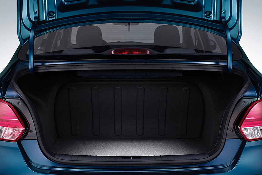 Длина Kia Soluto равна 4300 мм, ширина – 1700 мм, высота – 1460 мм, колесная база – 2570 мм. То есть по своим габаритам седан недалеко ушел от нашей Гранты. Объем багажника Soluto составляет 475 литров.