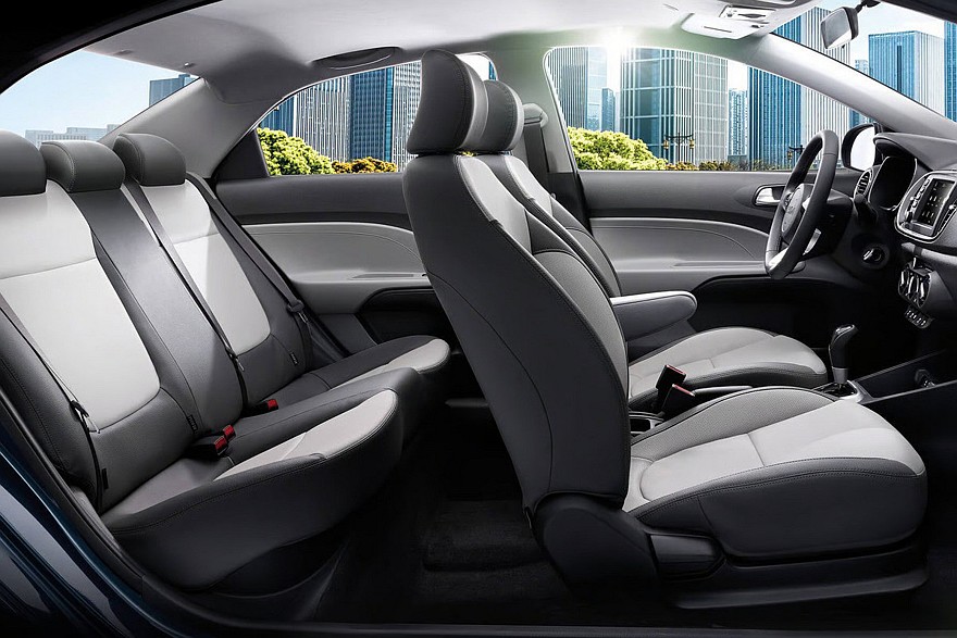 Седан предложен в двух комплектациях – Comfort и Prestige. В списке оборудования базовой версии значатся: стальные 14-дюймовые колеса, электропривод и обогрев наружных зеркал, тканевая обивка, кондиционер, мультимедиа с 7-дюймовым планшетом, камера заднего вида, фронтальные подушки безопасности, ABS и ESC. В исполнении Prestige появляются легкосплавные диски (но тоже 14-дюймовые), «кожаная» обивка, подогрев передних сидений.