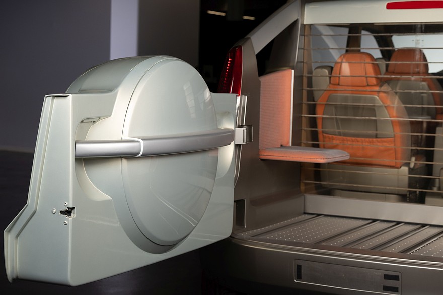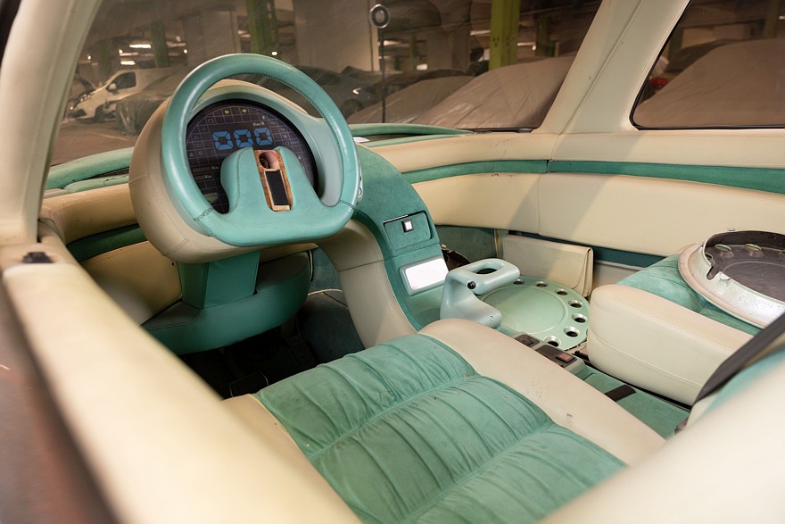 Одна из предположительно трёх моделей летающей тарелки, сделанная Renault для парижского Диснейленда. Вид немножко потасканный, но эффектный. В уютном салоне с фигурным диваном есть круглое смотровое окно в полу. Тарелка закреплена на шарнире, который позволяет задать ей нужное положение в пространстве.