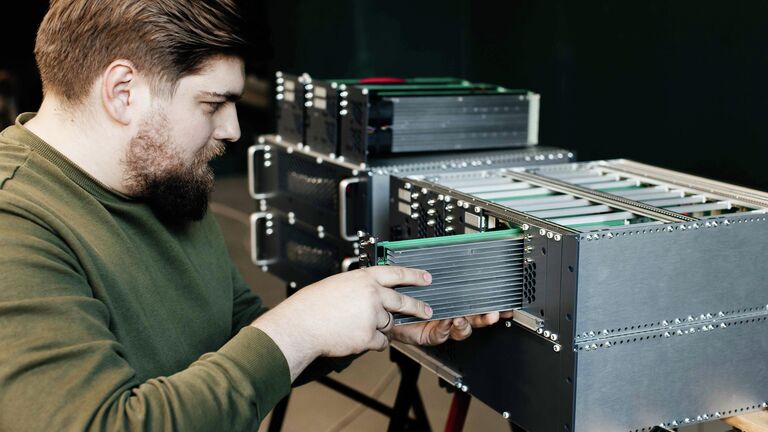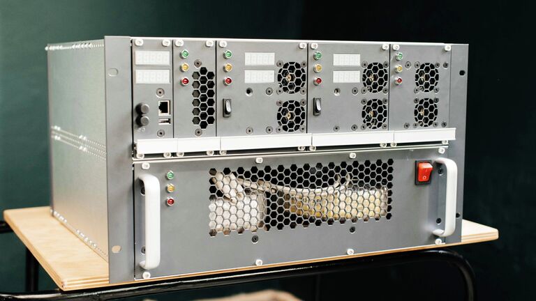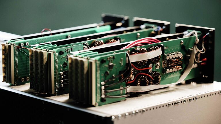 «Источники обеспечивают работу обмотки магнита-квадруполя и обмотки магнитов-корректоров, включая непрерывное измерение напряжения на нагрузке, а также протекающего через нагрузку тока. При этом все схемы управления, измерения и контроля выполнены с максимальным применением элементов современной цифровой схемотехники. Источники построены по модульному принципу, поддерживая резервирование силовой части и быструю замену вышедших из строя модулей», — рассказал инженер.