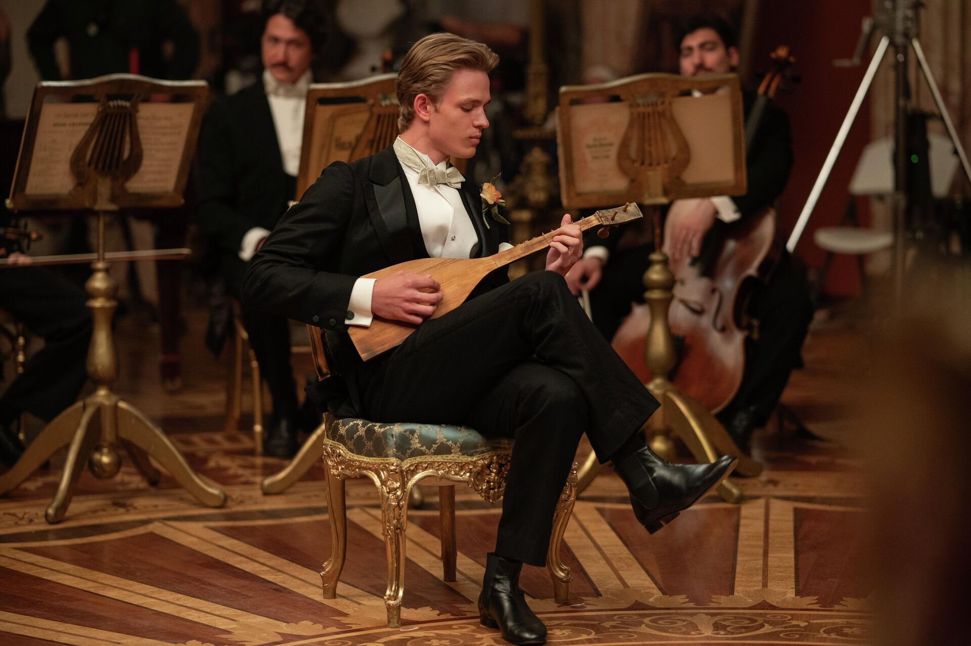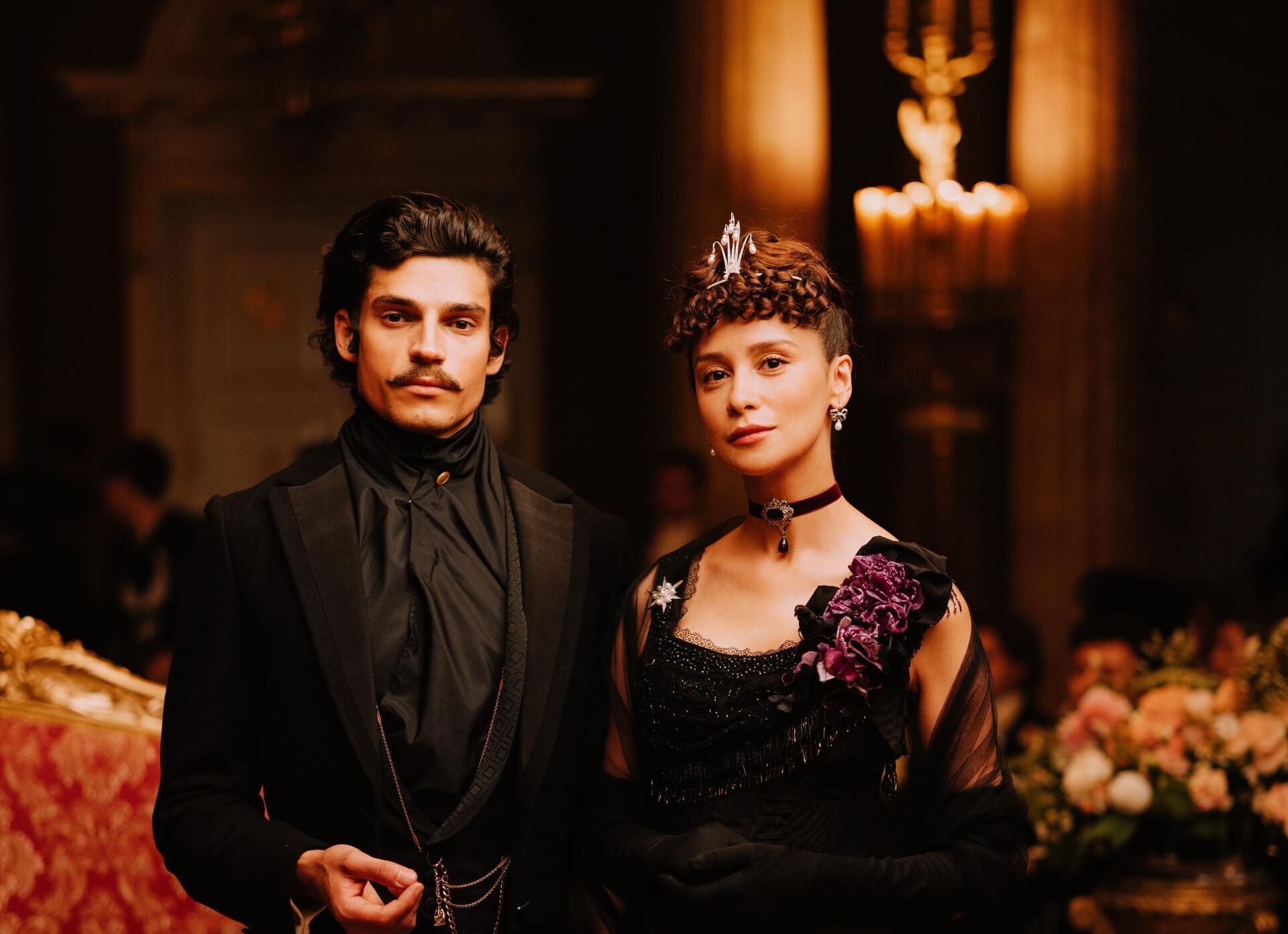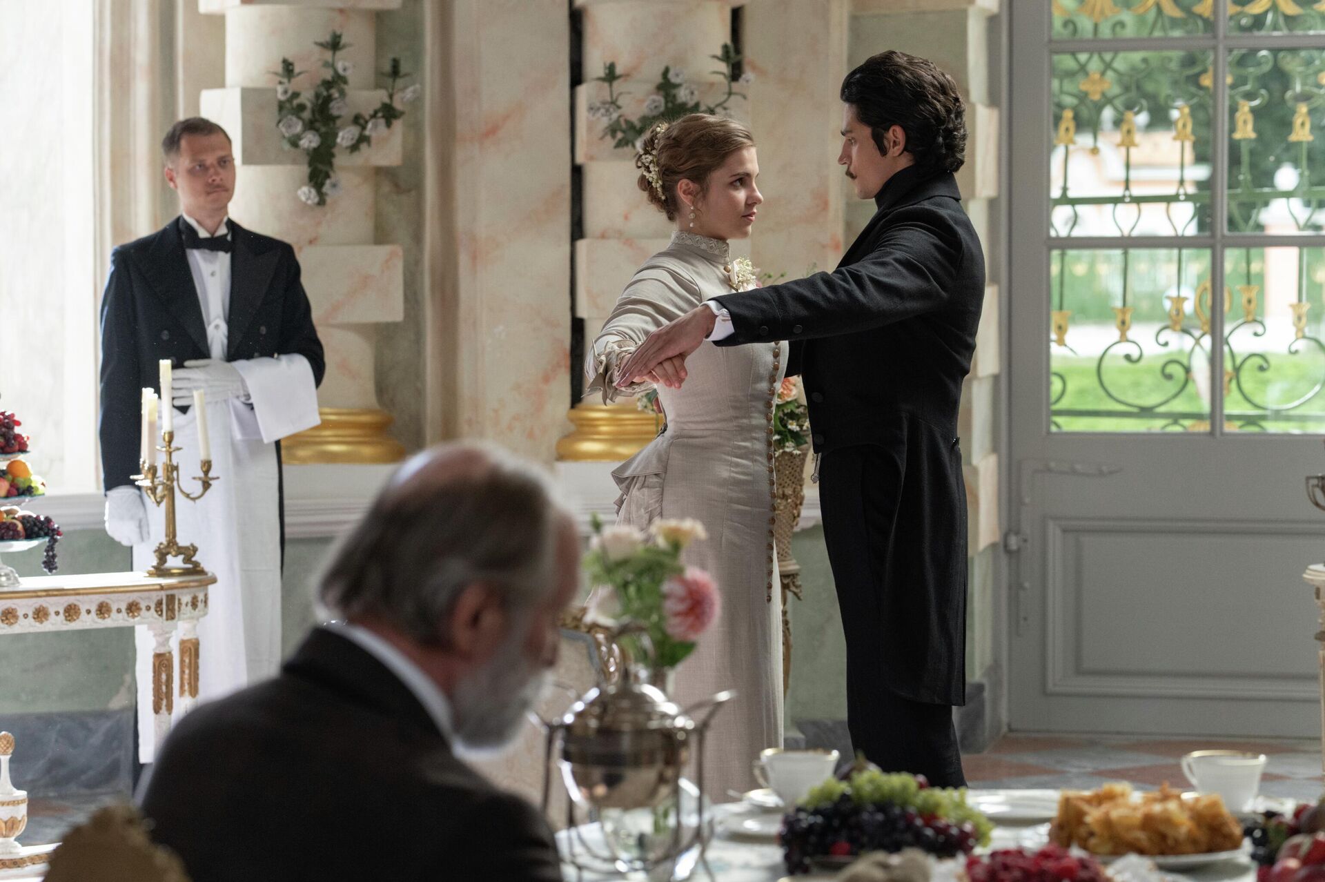 Для Равшаны Курковой — это дебют в историческом костюмном кино. «Мне всегда хотелось почувствовать себя частью другой эпохи. Словно перенестись на машине времени. Все эти старинные кружева, украшения, величественные интерьеры. Просто восторг и красота», — признается актриса.