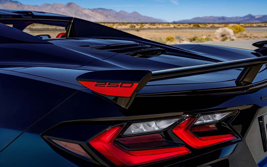 У Chevrolet Corvette Stars & Steel кузов будет либо белым, либо чёрным, и через всю длину украшенным полосами и звёздами серебристого или чёрного цвета – в стиле американского флага. На дверях и антикрыле можно увидеть «250», кроме того, корма украшена чёрными патрубками выхлопной системы, а профиль – красными тормозными суппортами Edge и колёсными дисками на выбор – либо чёрными глянцевыми, либо карбоновыми.
