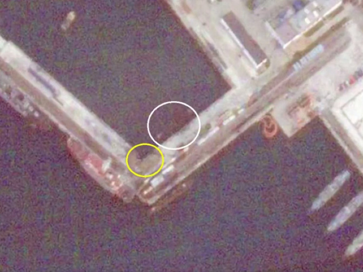 Уже на следующее утро спутниковые снимки подтвердили: субмарина цела, а вот причальная стенка серьезно повреждена. Военное ведомство опубликовало свежие кадры подлодки.
