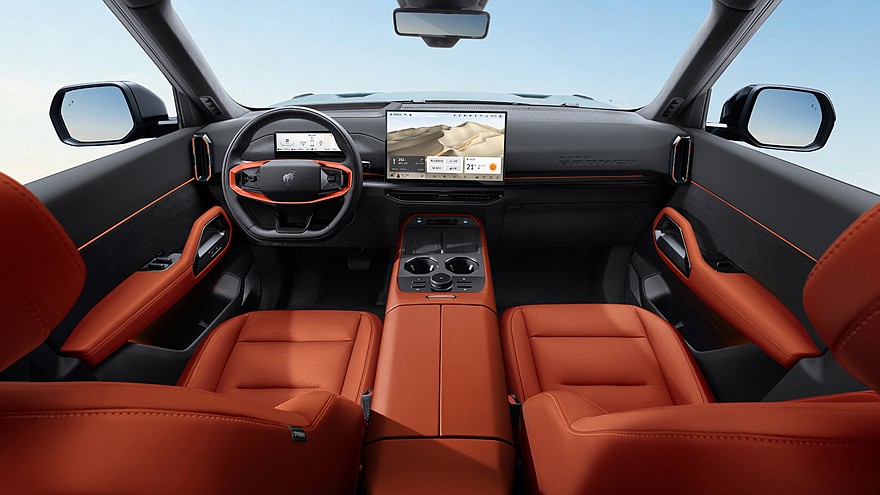 У нового пятиместного SUV для Китая габаритная длина равна 5025 мм (на 101 мм больше, чем у представленного в Австралии Ford Everest), ширина – 1960 мм, высота – 1815 / 1825 мм, а расстояние между осями – 2950 мм. Для сравнения, показатели нынешнего бензинового Bronco для поднебесного рынка – 4800 х 1990 х 1835 мм, колёсная база аналогичная. Поднебесному Бронко положены колёса размером 18 и 19 дюймов, колея спереди и сзади составляет 1670 мм, передний свес – 915 мм, задний свес – 1160 мм.