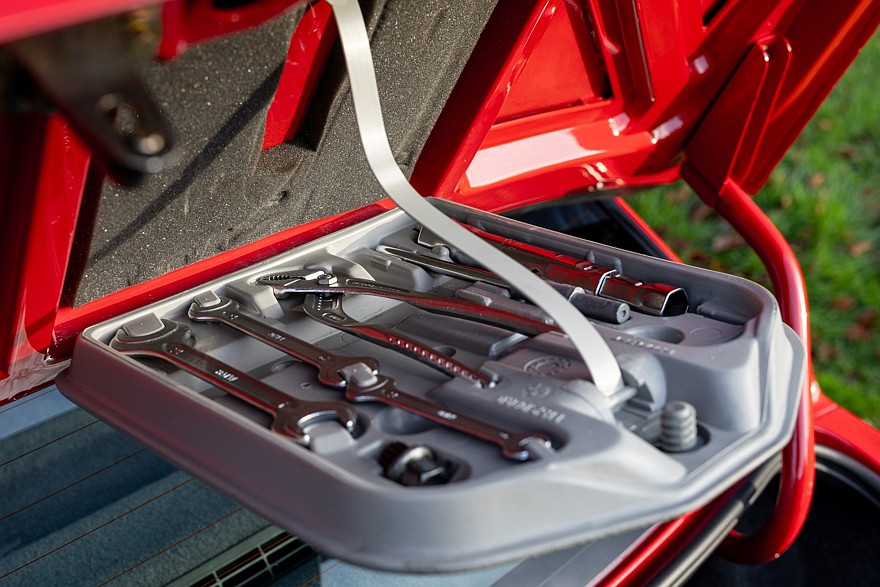 Выставленный на аукционе RM Sotheby’s экземпляр красного цвета Brillantrot с чёрным кожаным салоном был выпущен в 1990 году, среди заводских опций есть кондиционер. До 1998 года включительно автомобиль находился у первого владельца в Италии, затем был продан новому владельцу в Великобритании, затем переместился в Швейцарию, где в 2013 году его купил нынешний хозяин. По фотографиям видно, что за автомобилем тщательно следили, обслуживание он проходил у авторизованных компаний Munich Legends и Binelli Baar, пробег на текущий момент составляет 53 118 км.