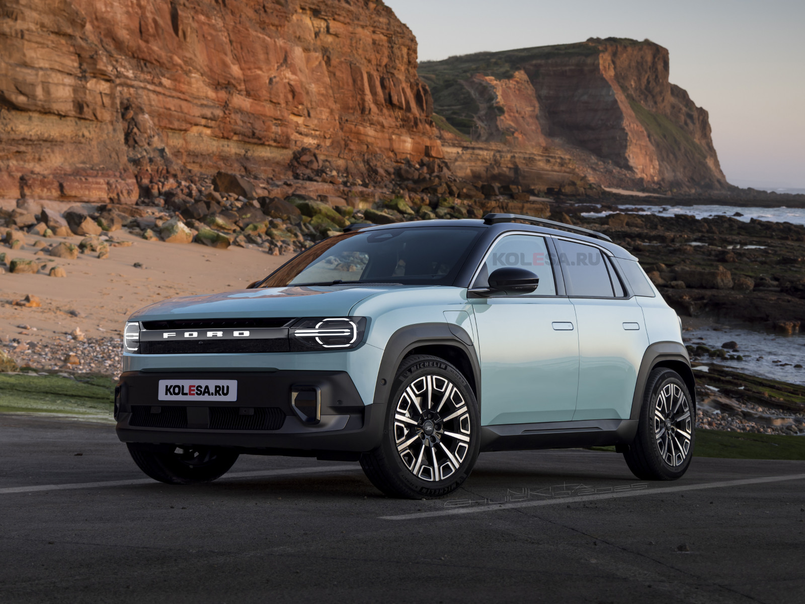 Ранее в этом месяце мы рассказывали о том, что Ford и Renault объявили о начале большого стратегического партнёрства в Европе с целью сокращения затрат. Одним из первых результатов этого сотрудничества может стать новое поколение Puma, которое будет сделано на базе Renault 4. Последний и был взят за основу для рендеров, а поскольку пока нет никакой информации о внешнем виде будущей новинки, мы изобразили вариант, сделанный в стилистике некоторых последних новинок Ford. В частности, передняя часть вдохновлена самым свежим кроссовером бренда под названием Bronco (китайская версия), впервые продемонстрированным летом этого года. Паркетник также получил выдвижные дверные ручки и схожую ломаную подоконную линию, сама же форма бокового остекления при этом оригинальная. Фонари представляют из себя крупные вертикальные блоки, объединённые декоративной вставкой со светодиодными габаритами в стиле обновлённого седана Ford Mondeo.