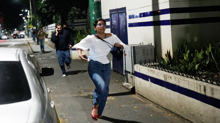 На фото: люди бегут в убежище после звуков взрывов в Каракасе.