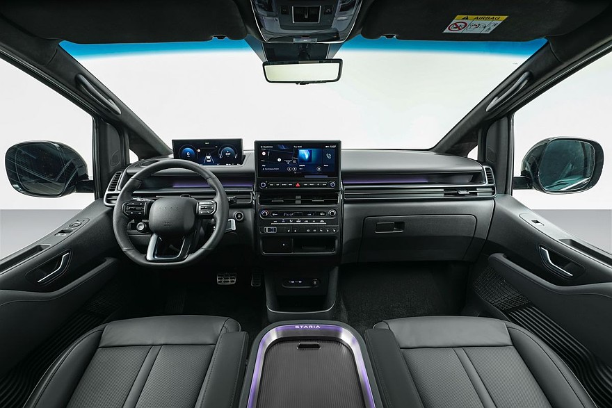 Внутри Staria Electric скопировала модернизированные версии с ДВС. Тут аналогичные новый руль и увеличенные экраны приборки и мультимедийной системы, а также традиционный блок управления «климатом» с физическими клавишами и шайбами (дореформенные вэн и фургон имеют сенсорную панель). Центральные дефлекторы обдува теперь находятся на привычном месте – под экраном мультимедиа.