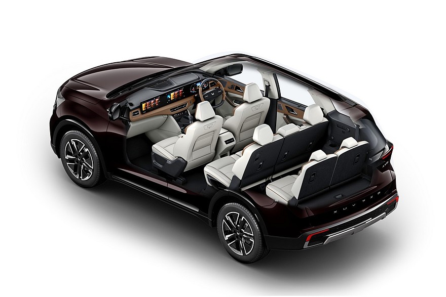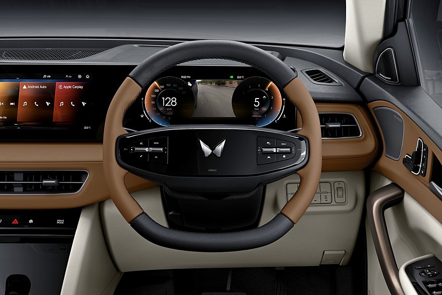 Внутри паркетник повторил стартовавший недавно электрокросс Mahindra XEV 9S, который хоть и заявлен в качестве отдельной модели, но, по сути, представляет собой «зеленую» версию как раз XUV700/XUV 7XO. Топливному автомобилю достались аналогичные передняя панель, руль и расположенная под центральными дефлекторами обдува сенсорная полоска. А еще Mahindra XUV 7XO уже в базе имеет трехэкранное табло без козырька – каждый дисплей диагональю 12,3 дюйма (у старого XUV700 табло состоит из двух экранов под козырьком). Мультимедиа – с поддержкой ChatGPT.