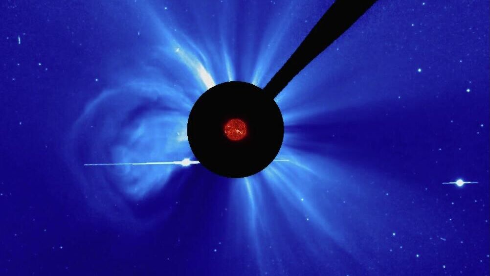 Кроме того, минувшей ночью в этой же области была замечена мощная вспышка М-класса (балл М3.3). Обычно события на обратной стороне Солнца вообще не удаётся зафиксировать и измерить, однако активная область уже находится прямо за горизонтом, благодаря чему вспышку заметили.