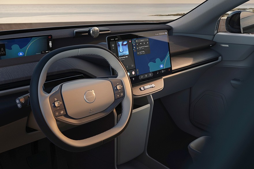 Комплектаций для Volvo EX60 заявлено тоже три — Core, Plus и Ultra, но на старте продаж будут доступны только Plus и Ultra, а базовая комплектация Core появится позже. Дизайн салона у Volvo EX60 более замысловатый, чем у Volvo XC70: передняя панель имеет многослойную текстурированную структуру, а 11,4-дюймовые приборный экран отнесён к лобовому стеклу и при взгляде с места водителя расположен как бы над сплюснутым двухспицевым рулём. Сервисные клавиши на руле, к счастью, физические, а вот все климатические настройки и даже регулировка зеркал зашиты в 15,04-дюймовый мультимедийный экран с новейшей версией фирменной операционной системы HuginCore. Эта система сделана на базе гугловской Android Automotive OS, в неё интегрирован ИИ-помощник Gemini и другие полезные сервисы от Google. Базовая аудиосистема от Bose имеет 21 громкоговоритель, а топовая 1820-ваттная аудиосистема Bowers & Wilkins — 28 громкоговорителей. Объём основного багажника — 523 л, со сложенными спинками заднего дивана — 1647 л. Даже у двухмоторных версий спереди есть дополнительный багажник объёмом 58 л.