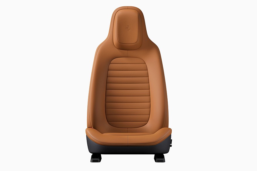 Салон у Ferrari Luce четырёхместный, для задних пассажиров предусмотрены индивидуальные дефлекторы обдува, пять тумблеров управления микроклиматом и небольшой экран, на который выводятся в том числе ключевые динамические характеристики. Представленный образец кожаного сиденья с интегральным подголовникам имеет классический дизайн без каких-либо украшательств.