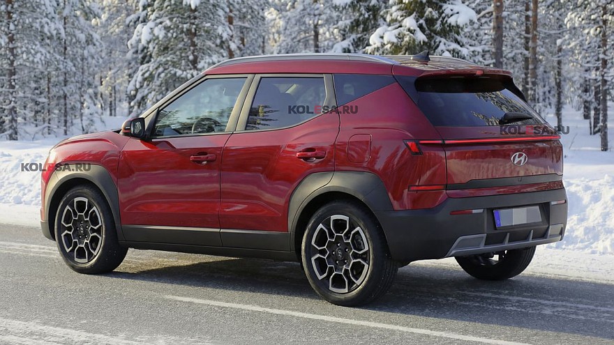 Судя по изображениям, корма помимо иного бампера получила более плоскую багажную дверь со спойлером в верхней части и «монофонарь» в виде тонкой линии со схожими «клыками» по бокам. Предполагается, что у нового Hyundai Bayon будет «оспортивленная» модификация с прибавкой N Line к названию, декором из глянцевого чёрного пластика и легкосплавными колёсными дисками размером 18 дюймов.