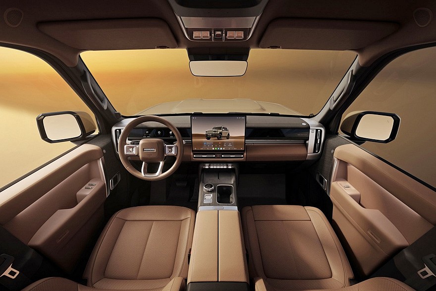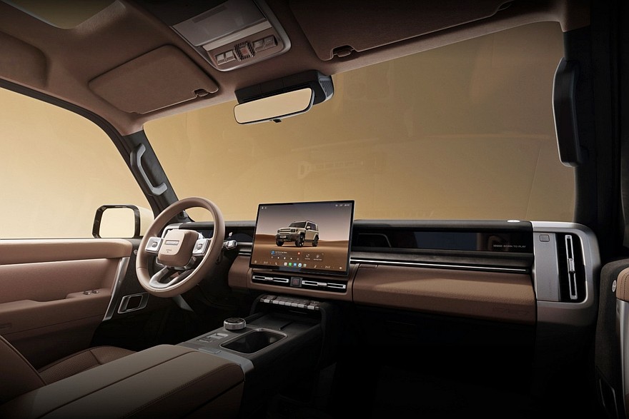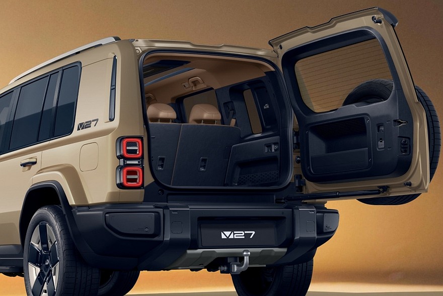 iCAUR V27 получил нарочито брутальную внешность. Кроссовер имеет внушительные бамперы, массивные накладки на колесных арках, прямоугольные фары со встроенными диодными кольцами ходовых огней, вертикальные задние фонари и распашную багажную дверь с запаской. Еще одна фишка – две продольные стеклянные секции на крыше в богатых комплектациях. В Китае для V27 также предусмотрен автопилот Falcon 700 с лидаром над лобовым стеклом, но у экспортной версии лидара нет.