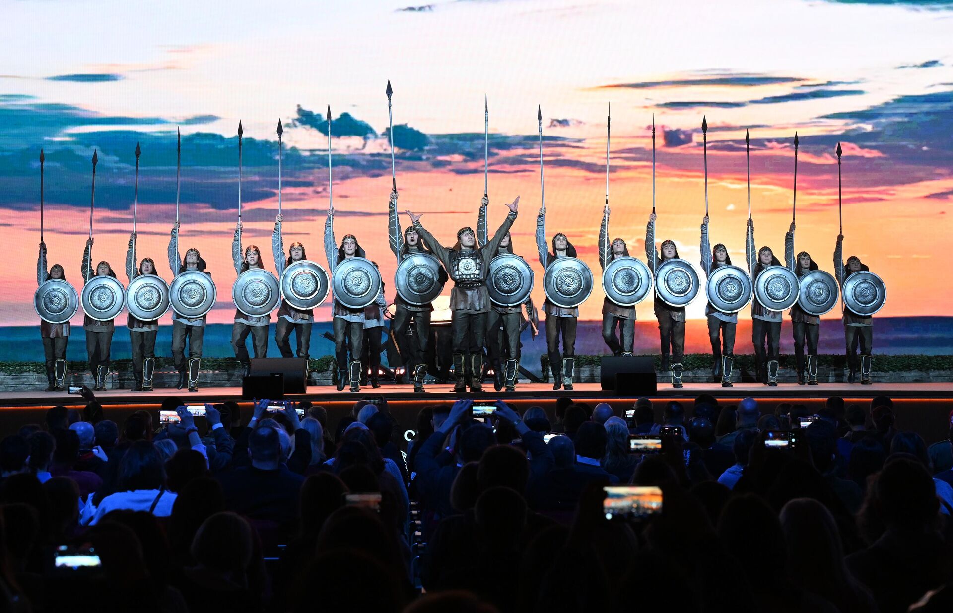 «Дорогие родные, большая многонациональная фестивальная семья! Поздравляем вас с праздником — Днём защитника Отечества! Каждый из присутствующих здесь, каждый из защитников, заслуживает того, чтобы о нём был снят фильм», — поздравила со сцены гостей вечера генеральный продюсер фестиваля Екатерина Яковлева.
