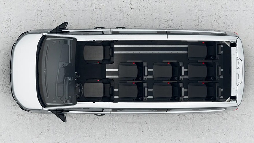 Исполнение VW Caravelle Shuttle Flex предлагается только с удлинённой колёсной базой и рассчитан на семерых – девятерых седоков. Пассажирская часть салона получила алюминиевый пол Smartfloor, на котором пять или семь отдельных сидений могут быть установлены на шести направляющих в различных конфигурациях. При этом сидения имеют подлокотники, крепления для детских кресел, а ещё предусмотрена подножка – либо фиксированная, либо с электроприводом. В компании отметили, что этот вариант был разработан с учетом индивидуальных требований спортивных клубов и торговых представителей.