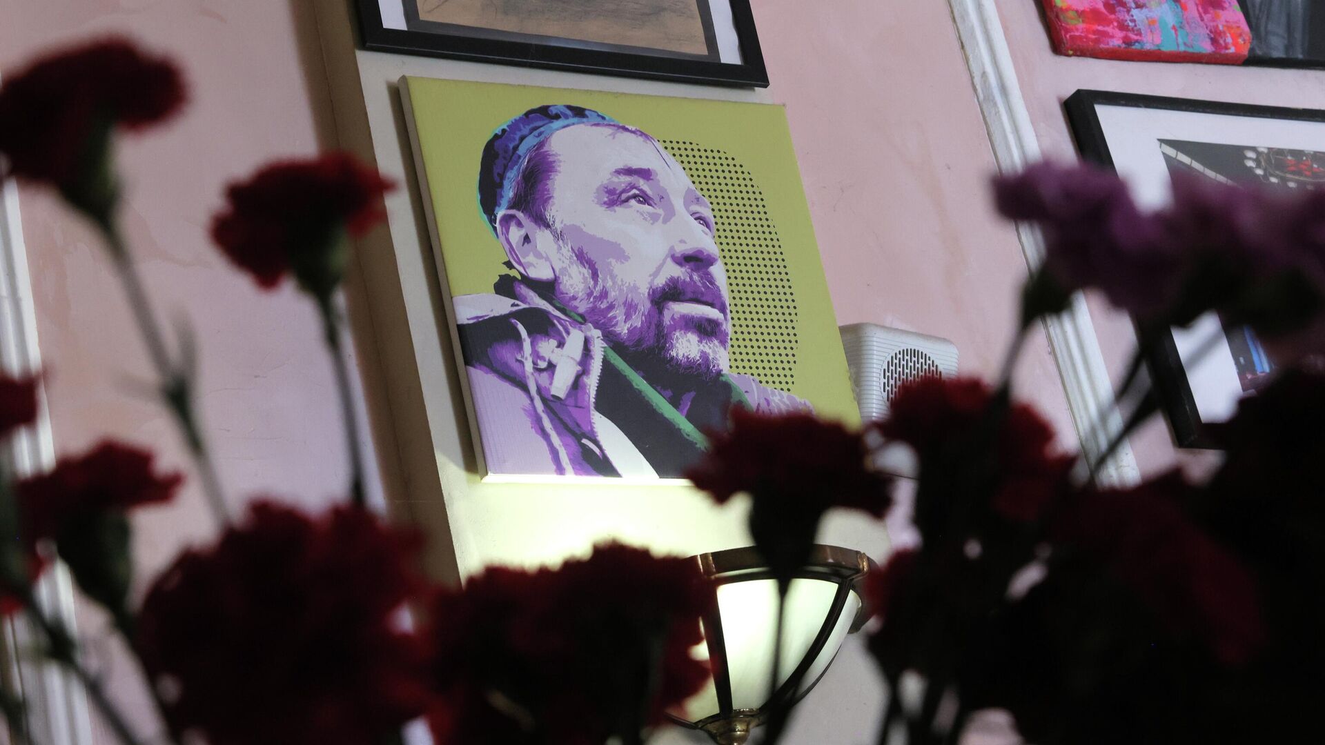 В понедельник возле театра и в фойе горожане зажигали лампадки и несли цветы к портрету драматурга.