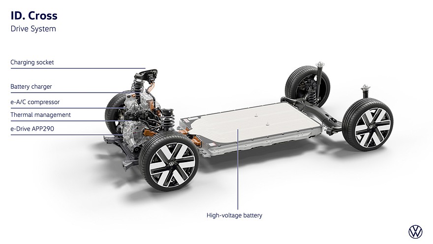 Volkswagen ID. Cross разделит технику с ID. Polo. Кроссовер предложат с двумя тяговыми батареями на выбор – литий-железо-фосфатную ёмкостью 37 кВт*ч, либо никель-марганцево-кобальтовую на 52 кВт*ч, запас хода SUV на одной зарядке в компании пока не раскрыли. Привод у него будет только передний, то есть с единственным электромотором на передней оси, мощность – 116, 135 или 211 л.с., максимальный крутящий момент у топ-версии – 290 Нм.