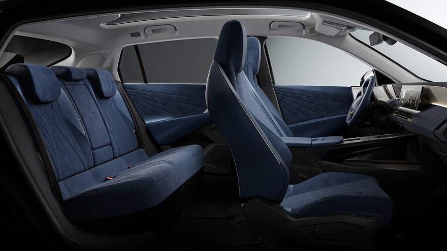 В салоне, доступном в различных вариантах оформления, установлено четырёхспицевое рулевое колесо со «сплюснутым» с двух сторон ободом, а на передней панели находятся 10-дюймовый виртуальный щиток приборов и 16-дюймовый тачскрин информационно-развлекательной системы. Ещё новинку снабдили двухэтажным центральным тоннелем и устройством для беспроводной зарядки смартфонов.