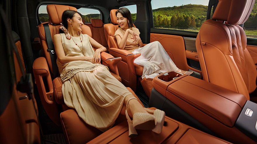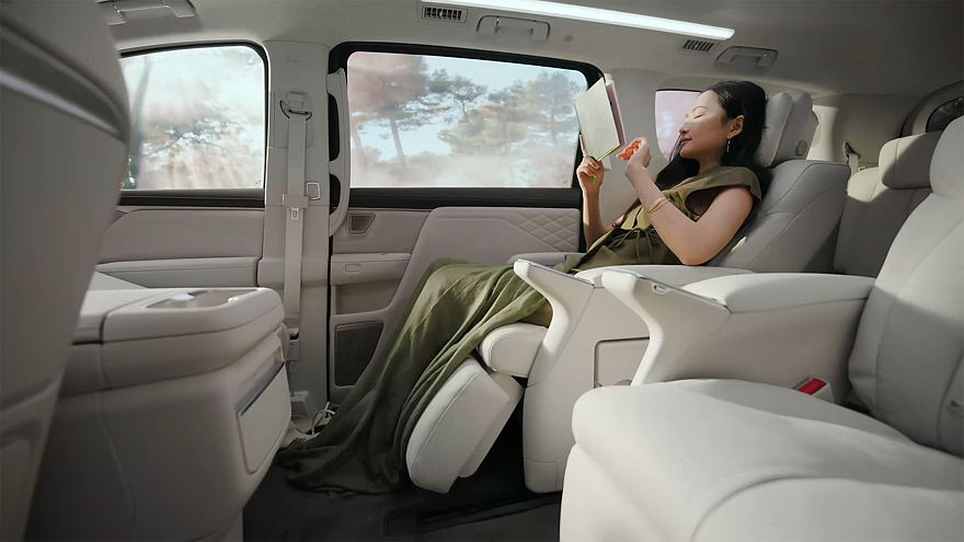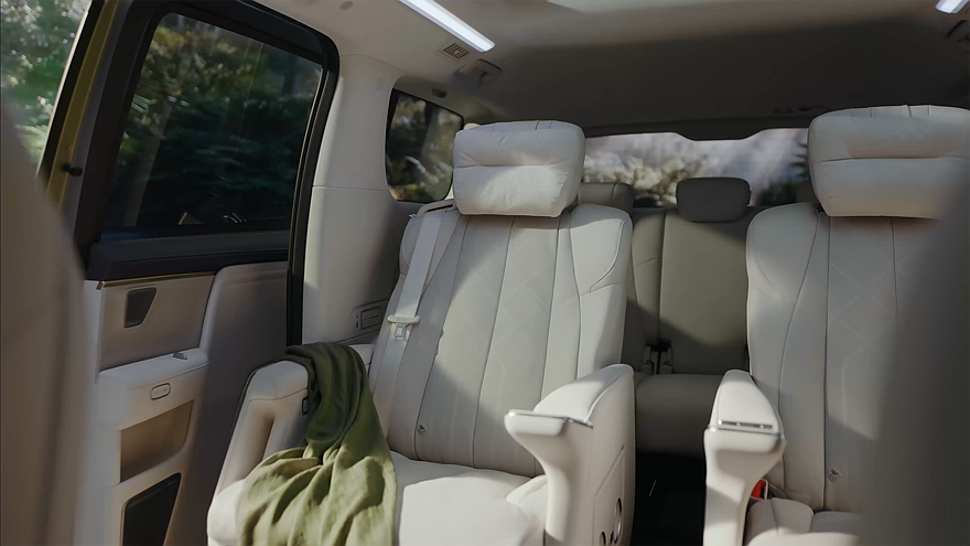 Внутреннее убранство флагманского минивэна может насчитывать до семи экранов. В список входят: виртуальный щиток приборов диагональю 10,25 дюйма, центральный тачскрин информационно-развлекательной системы и дисплей для переднего пассажира (диагональ каждого – 16,3 дюйма), 50-дюймовый проекционный дисплей AR-HUD, 21-дюймовый 4K-экран, установленный на потолке, а также пара мультимедийных экранчиков на 5,5 дюйма, предназначенных для пассажиров, расположившихся сзади.