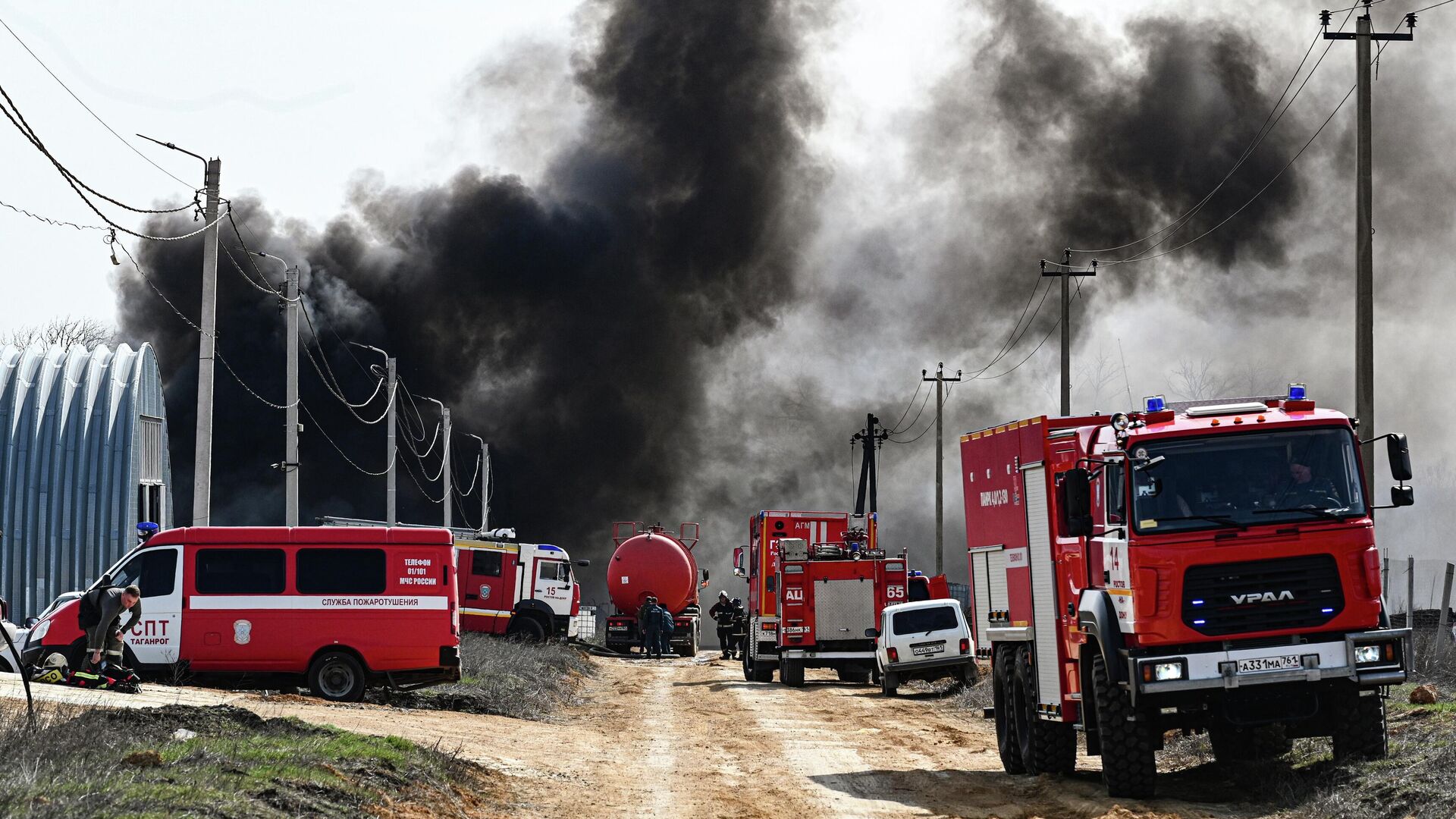 Пожар на складе для хранения горюче-смазочных материалов в селе Крым произошел в понедельник утром. Огонь охватил три здания на площади 1 тысяча квадратных метров. Позже пожар локализовали на 3 тысячах «квадратов».