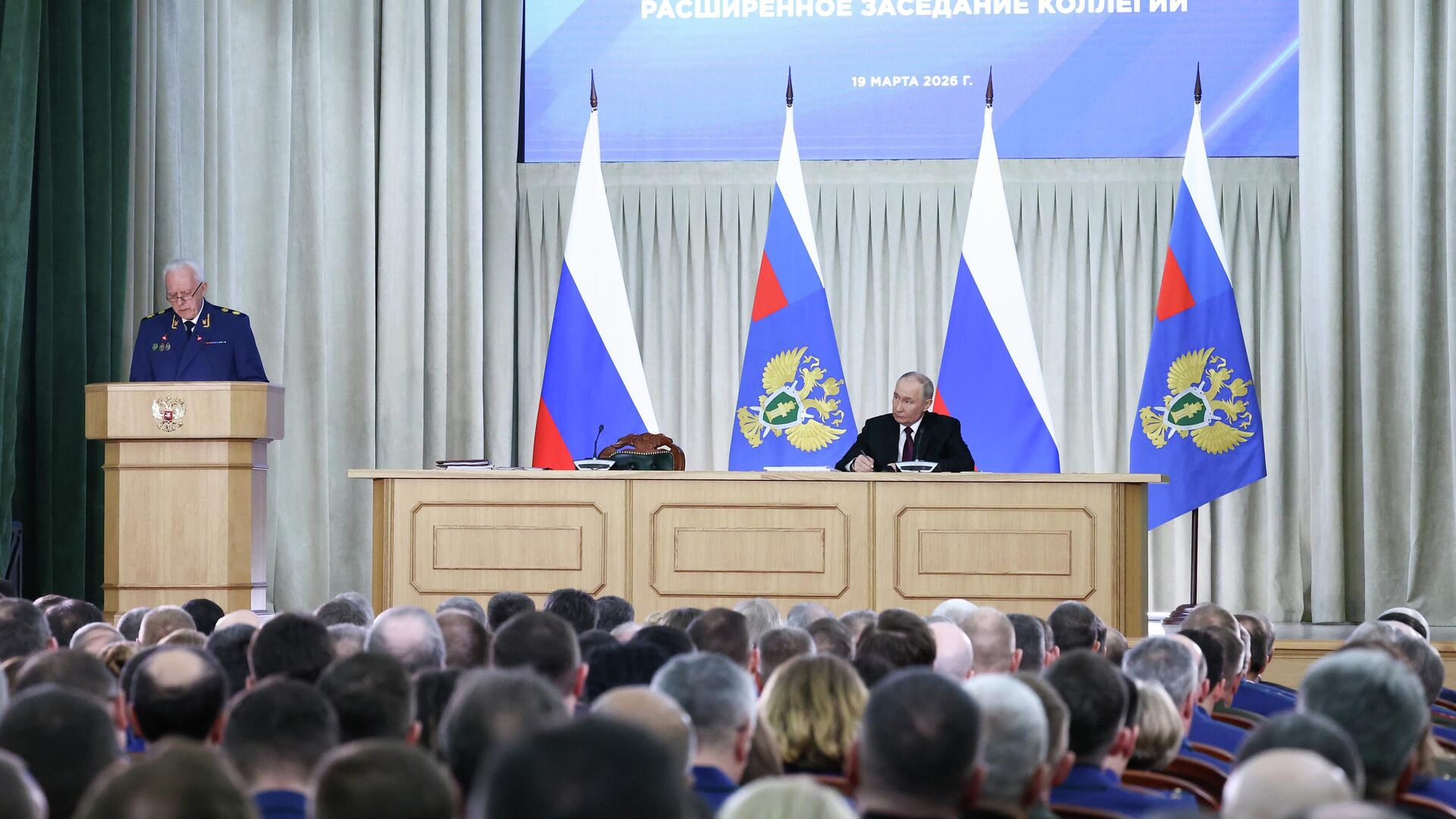 В ходе заседания коллегии Генеральной прокуратуры президент отметил большой опыт Гуцана, назначенного генпрокурором в прошлом году, в органах прокуратуры.