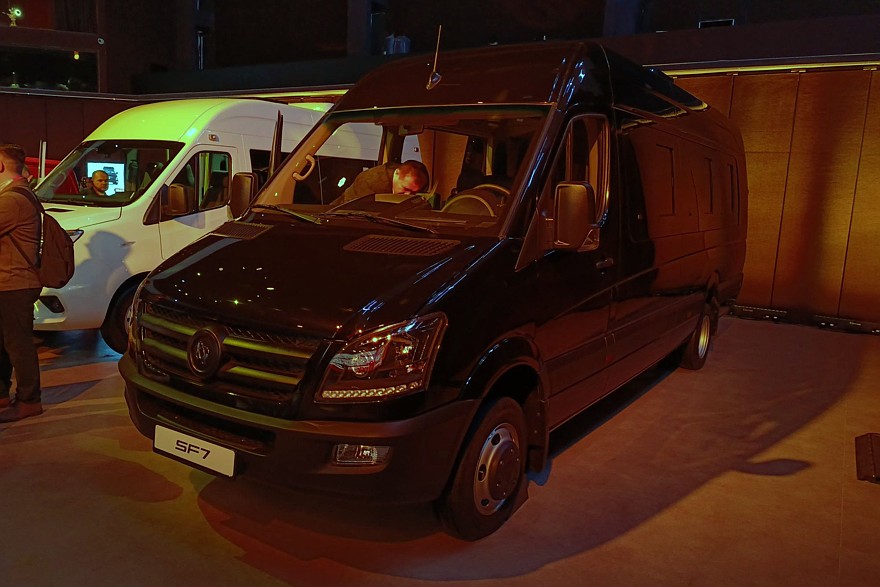 В свою очередь Sollers SF7 оснащается той же выпускаемой в России техникой от JAC, но при этом модель связана с компанией Vanche, которая выпускает линейки малотоннажной техники V6 и V7 по мотивам Mercedes-Benz Sprinter W906. Габаритная длина этого микроавтобуса равна 7490 мм, ширина – 2000 мм, высота – 2875 мм, а расстояние между осями составляет 4325 мм. Салон рассчитан максимально на 23 седоков.