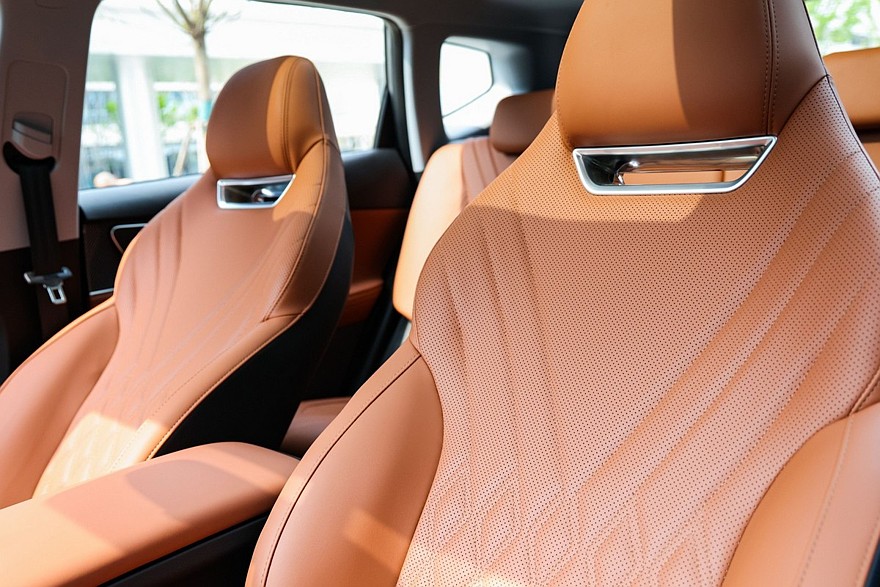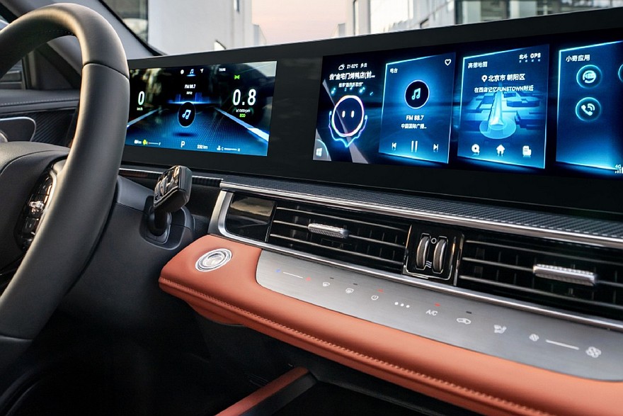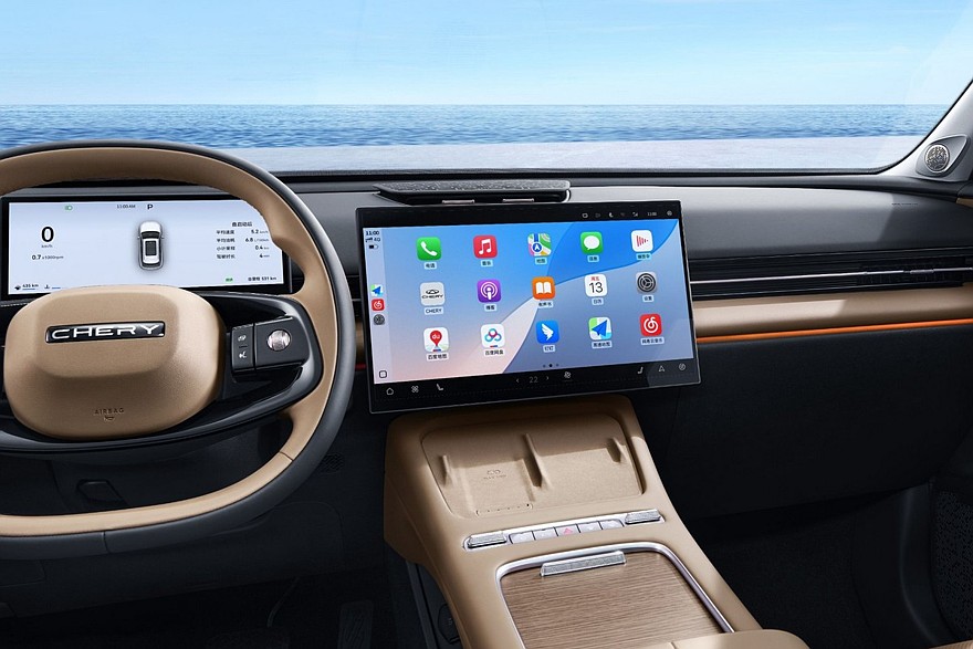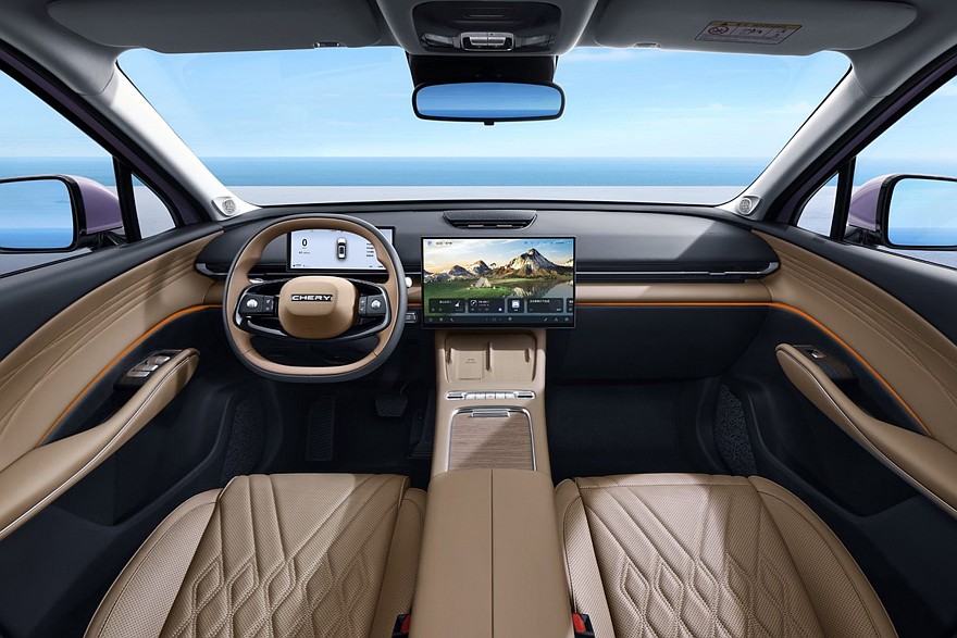 Внутри «элька» в целом повторила глобальную Omoda C7, разве что заменили материалы отделки. В салоне установлены раздельные экраны приборки (10,25 дюйма) и мультимедийной системы (15,6 дюйма). В самой богатой комплектации центральный планшет можно сдвинуть в сторону пассажира (у Omoda C7 в РФ такая фишка пока не появилась).