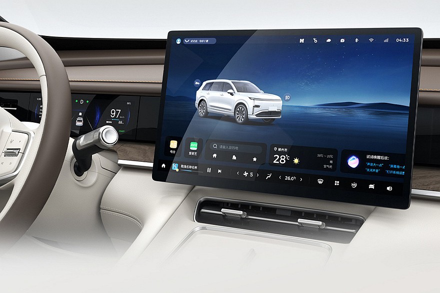 В салоне – раздельные экраны приборки (8,8 дюйма) и мультимедийной системы (15,6 дюйма). Кроссоверу также достались трехспицевый руль и двухэтажный центральный тоннель. Вместо привычного селектора коробки – подрулевой рычажок. В спинку переднего пассажирского кресла встроен откидной столик. Паркетник предложат в шестиместном исполнении. Объем багажника пока не раскрыт.