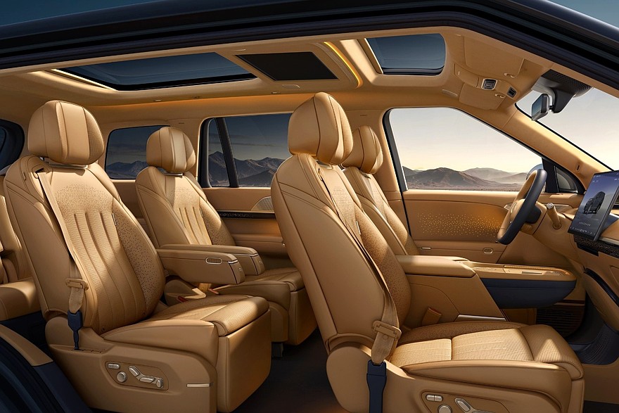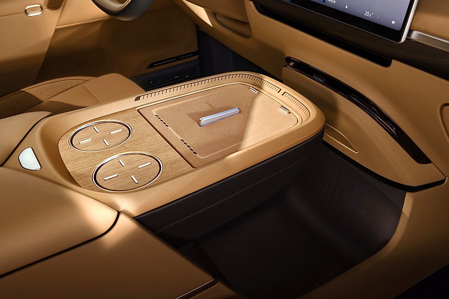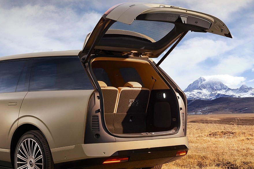 У plug-in гибридной версии тоже два электромотора: передний выдаёт 160 кВт и 230 Нм, задний — 240 кВт и 465 Нм, максимальная совокупная отдача — 430 кВт (585 л.с.) и 695 Нм. 1,5-литровый бензиновый турбомотор мощностью 150 л.с. у гибридной версии механически не связан с колёсами, работает в режиме генератора и заряжает тяговую батарею ёмкостью 63,3 кВт·ч. Запас хода на одной зарядке без включения ДВС — 430 км по циклу CLTC, в гибридном режиме с полностью заправленным баком (60 л) — 1585 км. Снаряженная масса — 2840 кг.