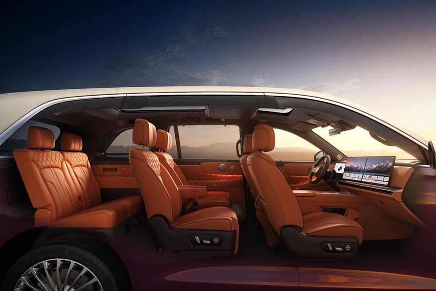 Всего у модели на старте приема предзаказов три исполнения: «короткий» паркетник, то есть семейный, представлен в одной комплектации, у Wey V9X «для руководителей/бизнесменов» две версии. В списке стандартного оборудования всех вариантов также заявлены: пневмоподвеска, панорамная крыша, обивка кожей Nappa, подогрев, вентиляция и массажер сидений первого и второго рядов (расположенное посередине правое сиденье еще имеет откидную подставку для ног), подогрев кресел третьего ряда, проекционный дисплей, система распознавания лиц. У задних седоков есть собственный «потолочный» развлекательный экран – базовый паркетник «для бизнесменов» получил планшет диагональю 17,3 дюйма, остальным версиям достался дисплей на 21,4 дюйма. Все исполнения еще имеют автопилот с лидаром над лобовым стеклом.