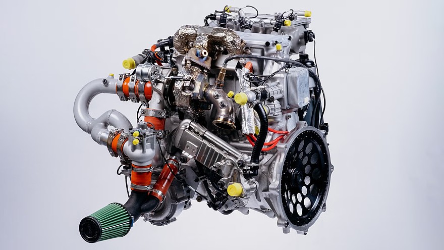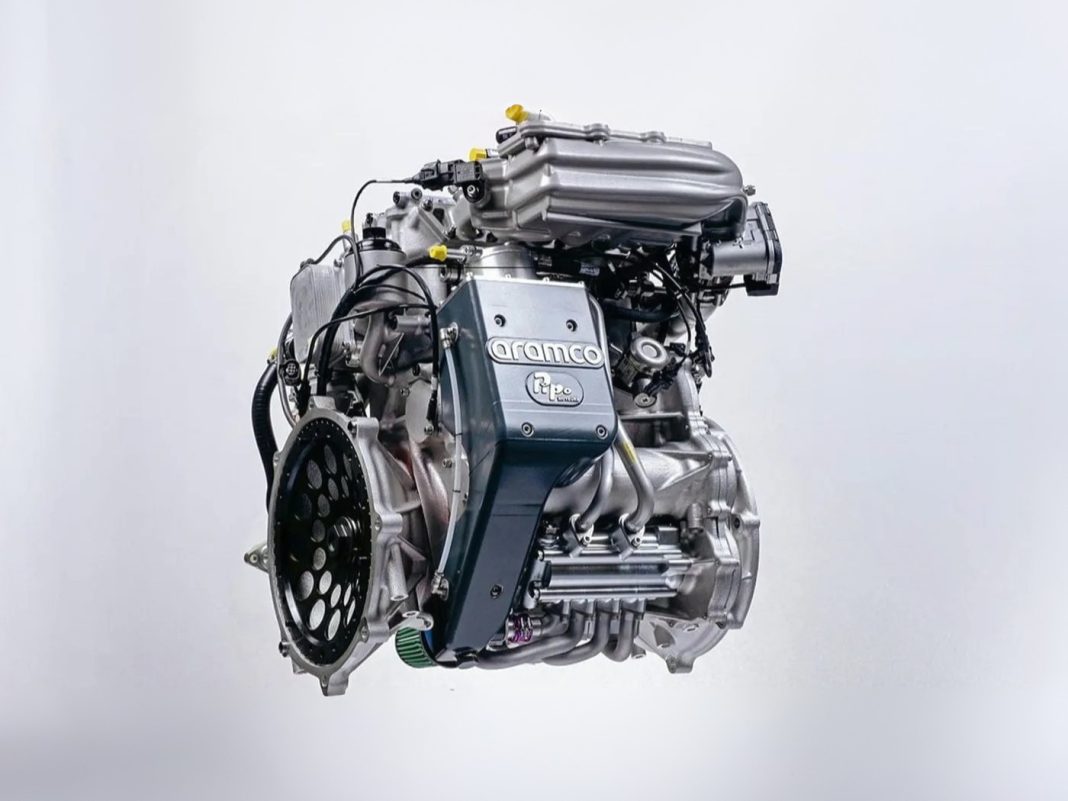 Силовая установка Aramco DHE разработана за рамками Horse Powertrain и предлагает новый взгляд на то, что такое максимально эффективный гибрид. В центре этого проекта находится ДВС, разработанный специально для работы в составе гибридной силовой установки. Опытный образец, показанный на иллюстрациях, представляет собой рядный трёхцилиндровый бензиновый двигатель с рабочим объёмом 1599 см3, диаметр цилиндра — 82 мм, ход поршня — 101 мм. Двигатель имеет нижневальную архитектуру и всего два клапана на цилиндр без фазовращателей, благодаря чему удалось максимально уменьшить его габариты. Для обеспечения необходимой мощности применены комбинированный впрыск топлива (в камеры сгорания и во впускной коллектор) и электронаддув. Для снижения потерь на трение вместо подшипников скольжения используются роликовые. Навесного оборудования нет, так как для работы вспомогательных систем используется электричество.
