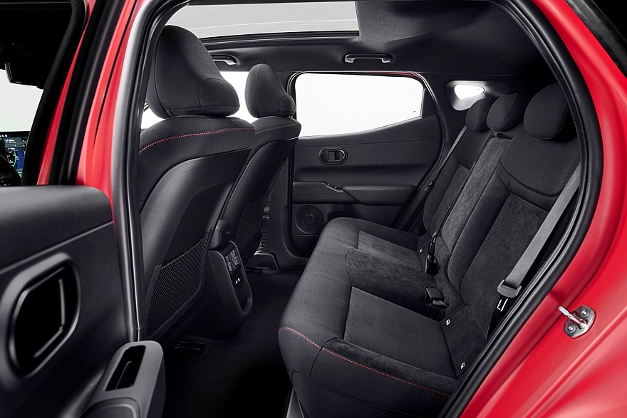 Ioniq 3 адресован молодым семьям, поэтому салон достаточно просторный, с множеством ниш для хранения вещей. Передняя панель представляет собой один большой карман с мягкой обивкой (решение, позаимствованное у Fiat Panda первого поколения). Узенький приборный экран находится над слегка сплюснутым рулём. Мультимедийный экран с операционкой Android Automotive OS может быть 12,9- либо 14,6-дюймовым, под ним разместился компактный блок микроклимата с физическими клавишами. В дорогих версиях будут двухзонный климат-контроль, мощная аудиосистема Bose, передние кресла с вентиляцией и богатый набор электронных ассистентов водителя. Объём багажника — 322 л плюс 119-литровое подполье, именуемое Megabox.